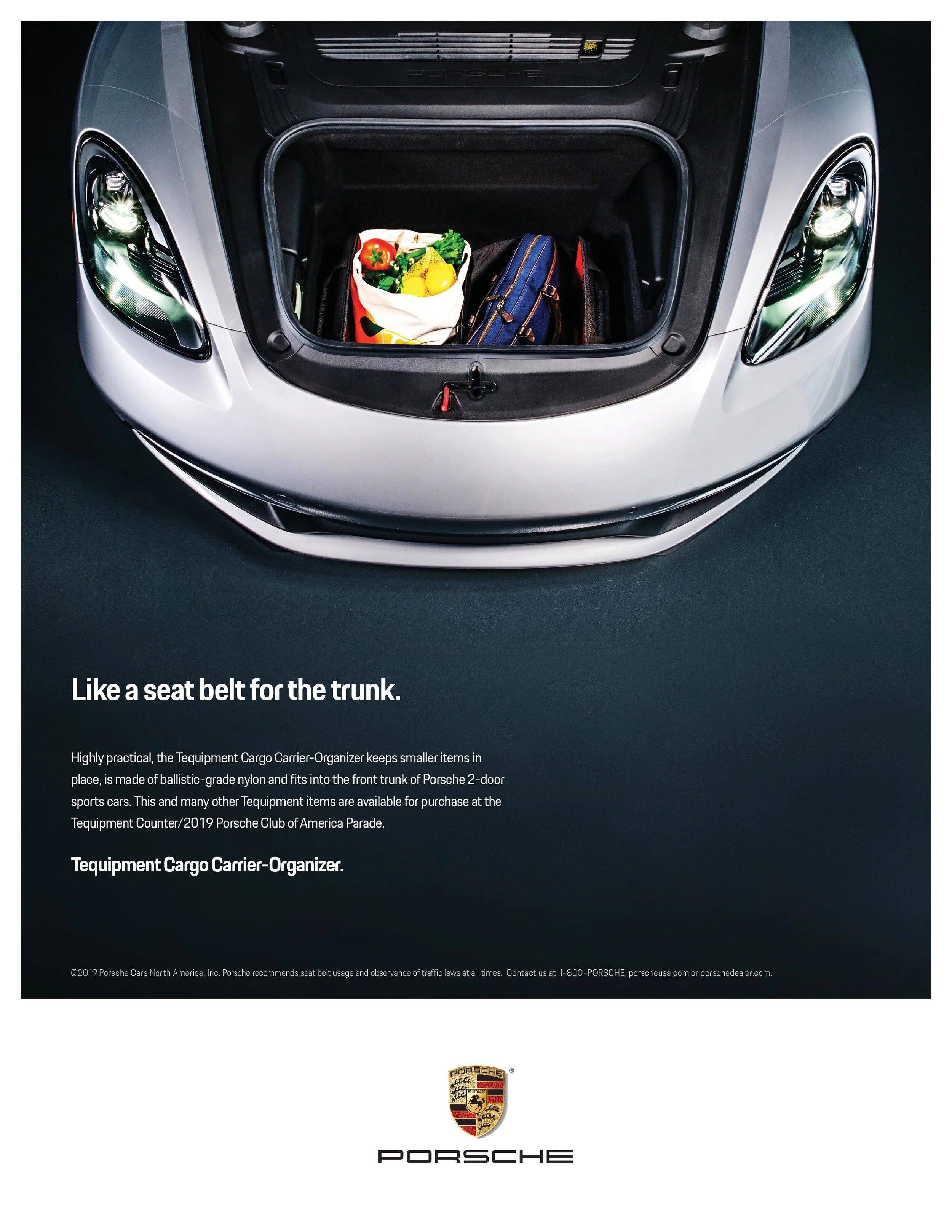 Last year, we were hired by Porsche to create a marketing campaign in coordination with Snaphouse Media. The luxury car company was launching a new multi-purpose trunk insert and brought us in to shoot promotional photos to use in their marketing media. It was an exciting challenge, capturing the utility of this new accessory while also showing off the elegance that Porsche is known for.